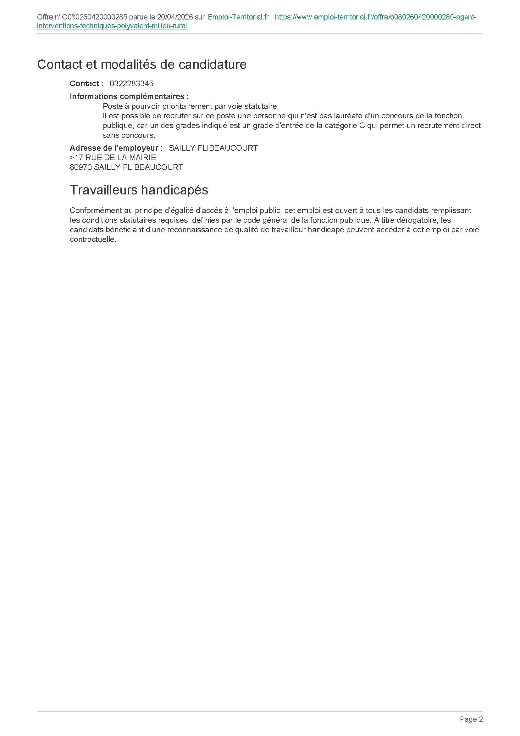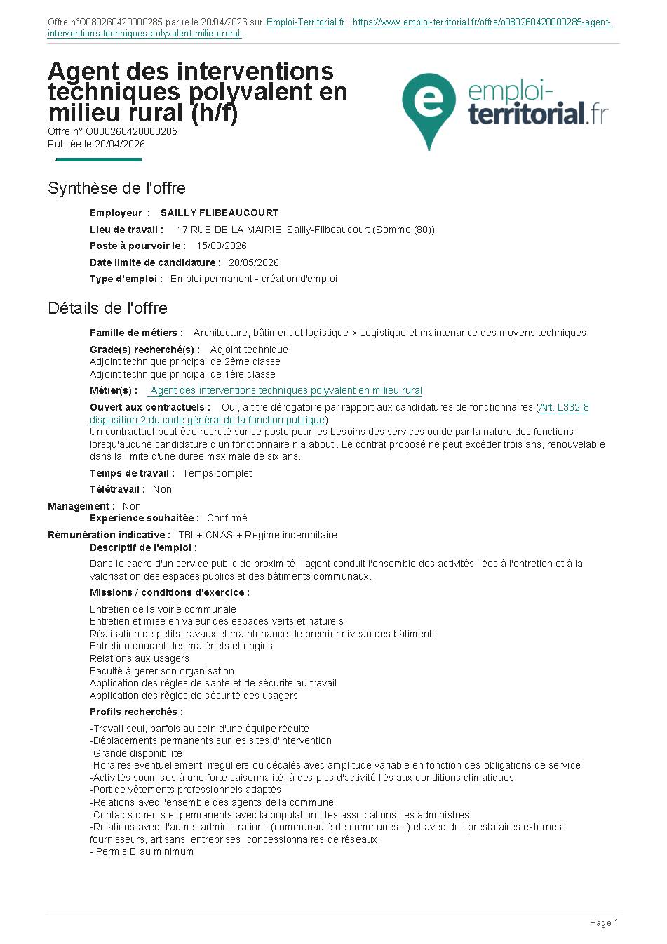 Offre d’emploi